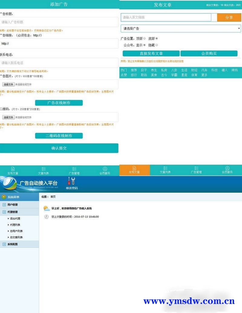 用户自己可以新增广告,暂时仅有顶部及底部两个广告位。