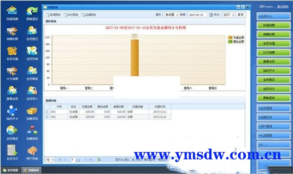 ◆报表中心(会员报表 充值报表 消费报表 消费统计 人流统计)