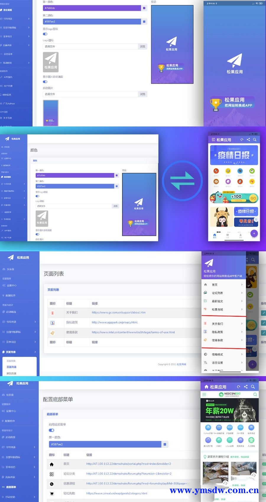 这是一款网站转换成APP的源代码,开发语言使用Flutter,开发工具使用的是AndroidStudio,你只需要在APP源代码里面填写你的域名,即可生成即可生成APP,包括安卓或者苹果,与此同时我们提供了APP的控制端.你可以通过控制端设置APP的颜色、添加APP的图标、添加APP的菜单栏目。