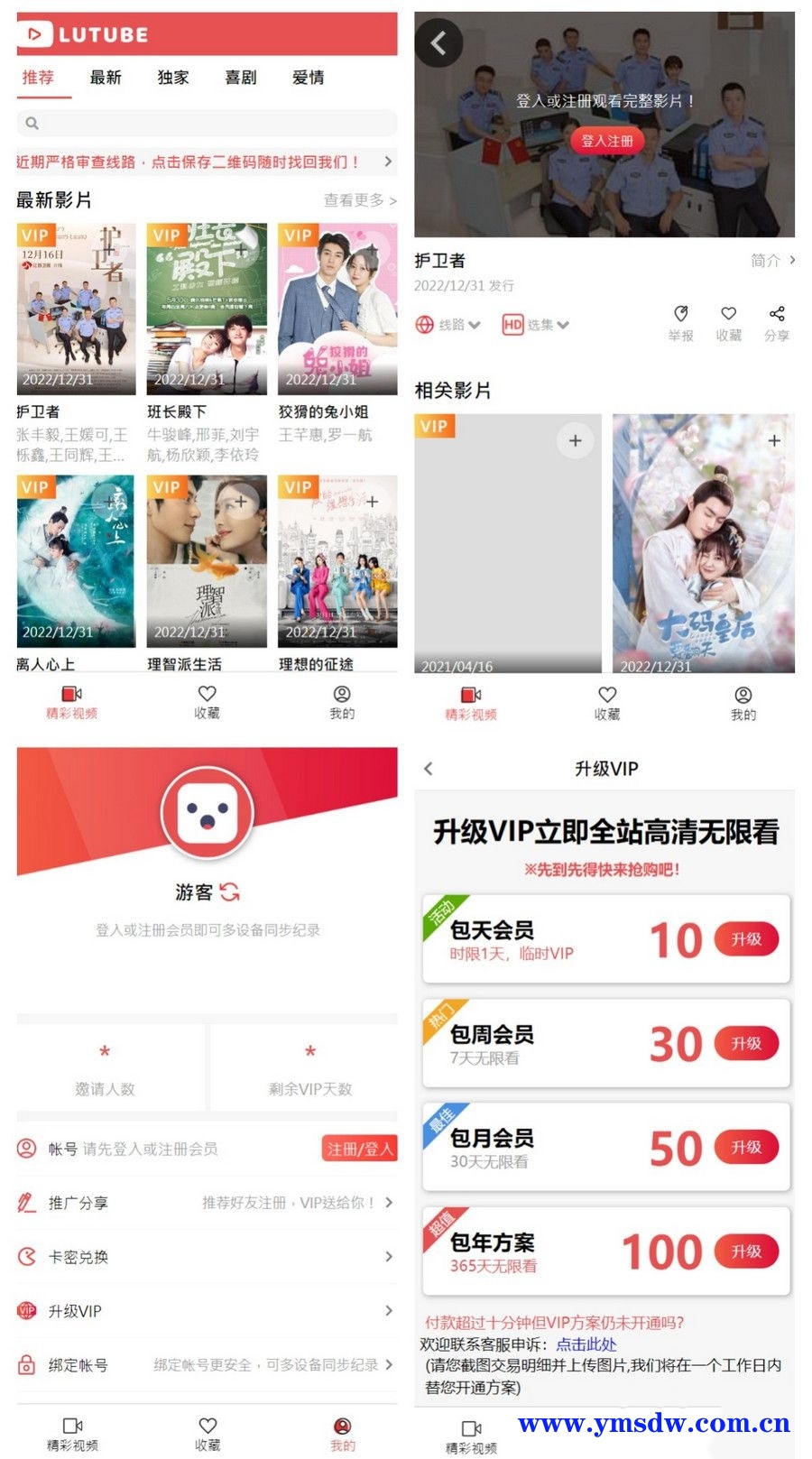 4. 共有三个播放界面。 未注册会员、普通注册会员、VIP会员会看到不同的播放界面提醒。