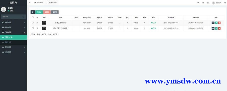 后台添加出售矿机/云算力的参数、收益比例及详情