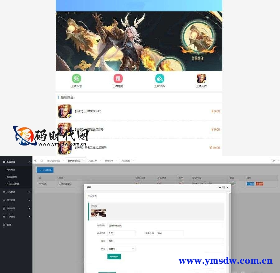 没有太多华丽的介绍,页面简单实用,程序适合自营王者荣耀代练,账户交易 ,以及皮肤交易。