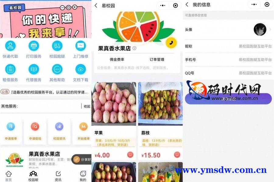 需要准备小程序服务账号、服务器、注册域名、校园网跑腿小程序源码。