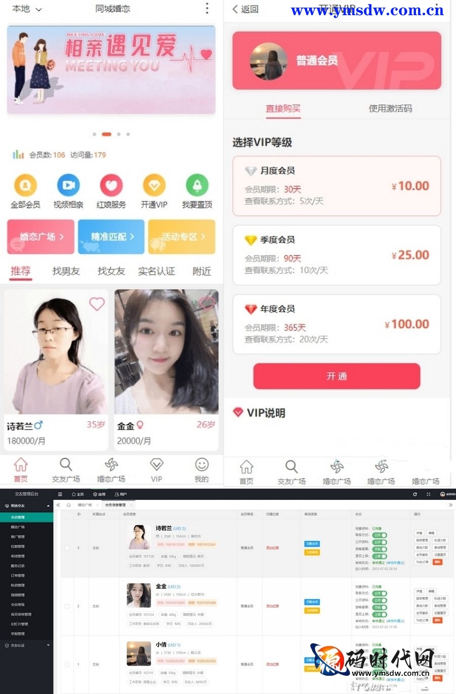 对于婚恋服务从业者来说,PC端是进行日常管理和运营的重要平台。金媒相亲交友神级约会系统的PC端界面简洁明了,功能布局合理,操作方便快捷。管理者可以通过PC端后台管理系统,对用户信息、媒婆返利记录、红娘服务订单、婚庆合作商家等进行全面管理。同时,PC端还提供了数据分析功能,管理者可以实时查看平台的运营数据,如用户注册量、相亲成功率、媒婆返利金额等,为决策提供有力支持。