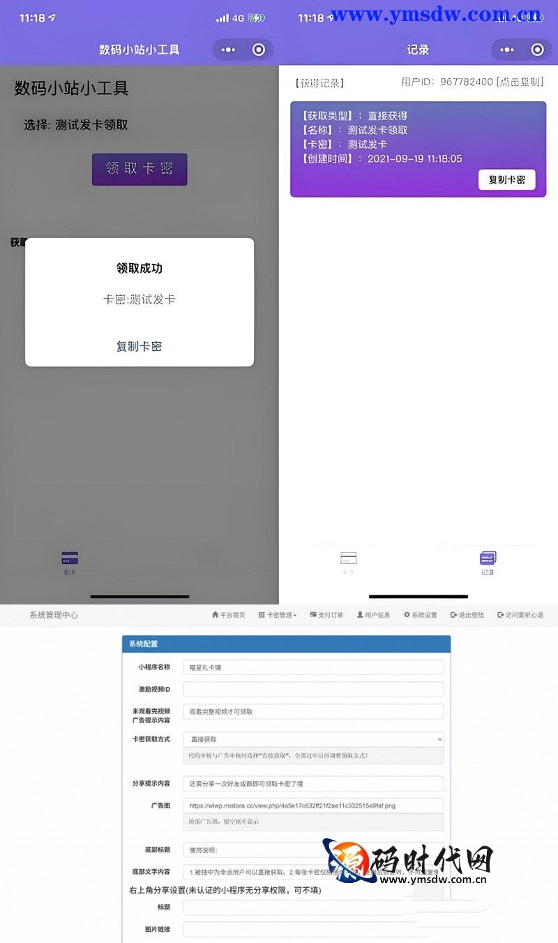 这是一套经过深度二次开发的微信发卡小程序源码,基于PHP后台打造,专为卡密分发场景优化设计。系统支持多种卡密领取方式,完美整合微信流量主功能,帮助运营者实现高效变现。